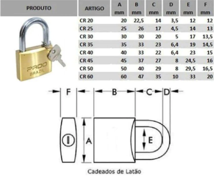 Cadeado Pado Lt 30mm 2 Chaves Não Enferruja Resistente Latão Com a linha de cadeados Pado, todo mundo se sente mais seguro. São cadeados de padrão exportação que proporcionam muita qualidade para as mais diversas aplicações. Informações Técnicas: Produzido em latão maciço, haste de aço cementada e cromada. Chaves de latão niqueladas. Utilização: Caixa de ferramentas Armários de academia Caixa de Correio Portões e Janelas, dentre outros. Acompanha 2 Chaves iguais.