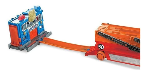 A rampa retrátil conecta facilmente com outros conjuntos Hot Wheels City, ampliando o universo de brincadeiras. Compatível com pista laranja Hot Wheels, permite encaixe direto e lançamento dos carrinhos para corridas emocionantes lado a lado.