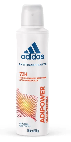 Desodorante Antitranspirante Adidas ADIPOWER. Tão forte quanto você. Máxima performance, com Tecnologia Body Response, uma fórmula única com tecnologia encapsulada que se ativa com o calor e movimento do corpo, garantindo ultraproteção de até 72 horas. ADIDAS ADIPOWER protege quando o corpo mais precisa.