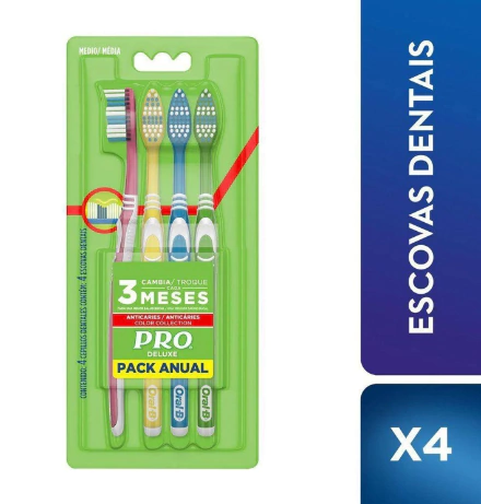 4 unidades da escova de dente Oral-B Pro Deluxe Anticáries.